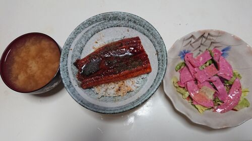 本日の夕飯🌃🍴 今日は土用丑の日ですよ、 これが食べられるのも仕事があればこそなんですけどね。ちなみに、味噌汁は見えないけど、しじみです。そして、今日は体操男子個人総合をバッチリ見ました❗最後までドキドキっ。 橋本くん、おめでとう~