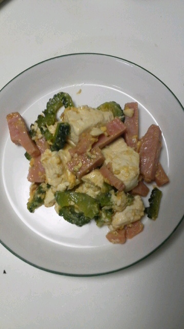 2013-07-24 ほんとは嫌いなんだけど 無題 #練習用 これ、何に見えますか? いちおう、ゴーヤチャンプル…ってやつですよね? ほんとは嫌いなんだけど、このゴーヤってやつ。 苦いだけでどこがいいのよって。 こんなん、好きな人いるのかなって、思えば、つい最近ゴーヤの深さを聞きました。 試し…じゃないけど、野菜不足の折り、頂き物もあったので、今日の晩御飯。 ちなみに今日の初ご飯。 もう、こうなりゃ何でもおいしいって。 あっ、テレビで恐怖映像やってるー では、また。
